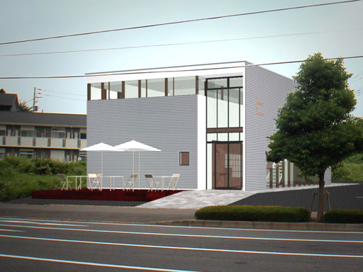 洋菓子店と美容サロンを併設する新築店舗の計画案。2階建ての建物をひとつの塊ととらえて、外から見たときに印象的に見えるように、金属面とガラス面のバランスをコントロールしている。それでいて内部においては、各階ごとにヒューマンスケールに合わせた空間が展開していく。